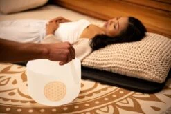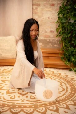 The Sound Healing Lab Flower of Life crystal singing bowl features a 128 Hz vibration, offering a versatile tone that benefits all chakras. It strengthens unconditional love for ourselves and others while providing a calming, balancing effect. Made from high-purity quartz, this crystal singing bowl is a beautiful musical instrument that creates a pleasant aura with its unique sound and design. Its relaxing and peaceful tones positively impact mood and overall well-being, enhancing any space with serenity.