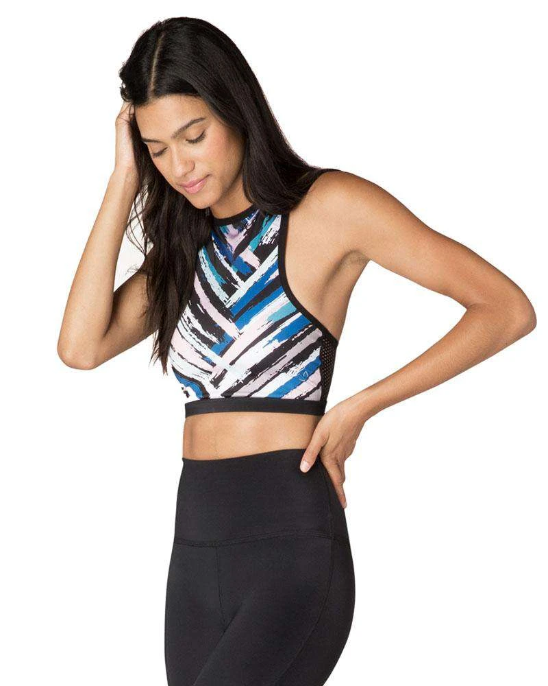 Beyond Yoga’s Lux Blocked Out Racerback Bra is a performance bra that can be used for multiple activities in and out of the water. It is a medium support bra with a compression hem band and perforated mesh back for moisture-wicking and breathability properties. Made from quick dry fabric and four way stretch.Â