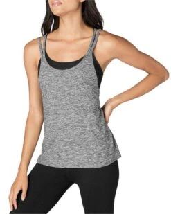 Using Beyond Yoga space-dye fabric, the Weekend Traveler Strappy Tank is buttery soft with a relaxed fit that has low armholes and a triangle-strap back for some playful contrast. This is a great layering piece to show off your favorite yoga bra.Â