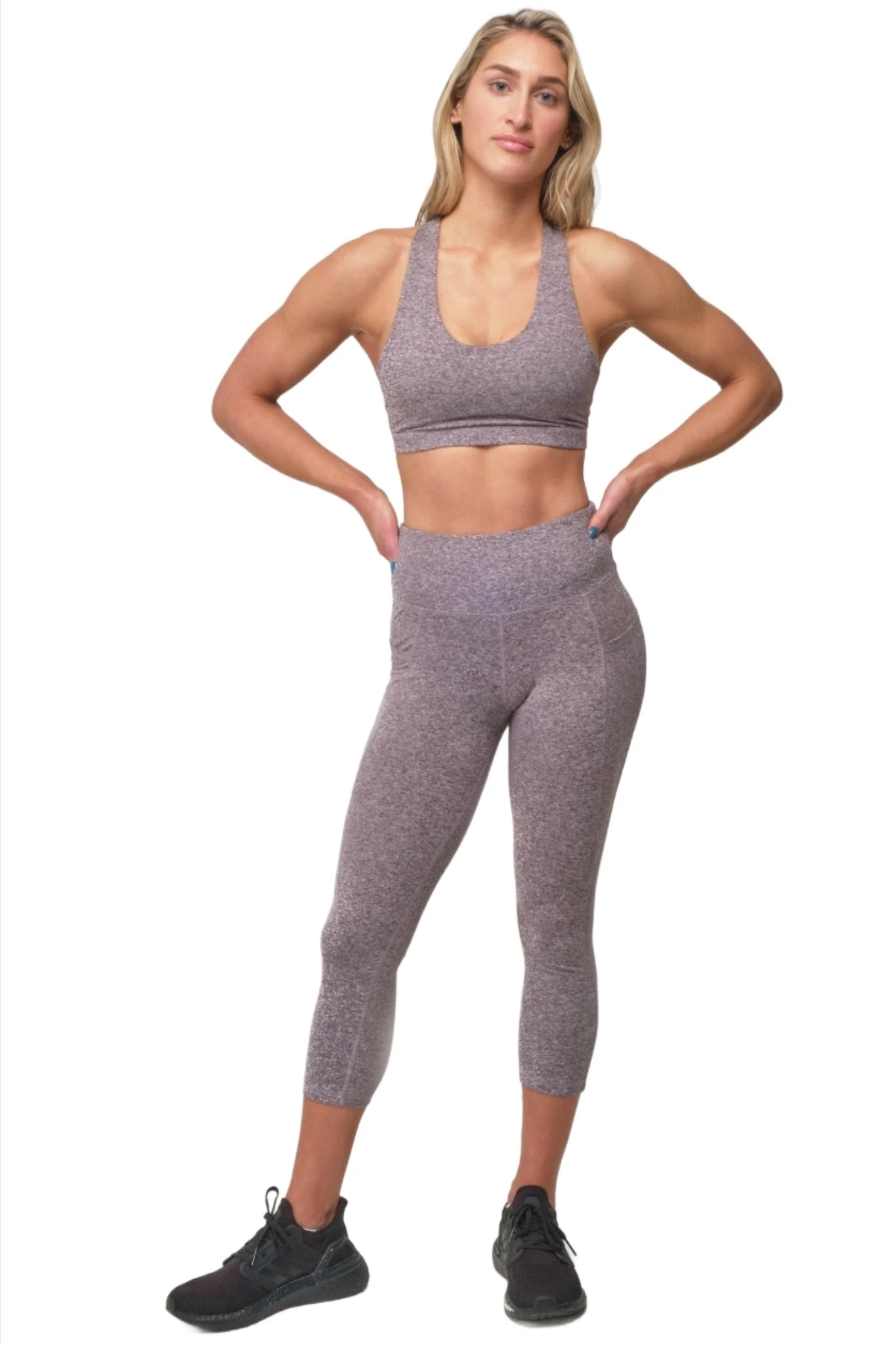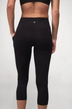A compressive high-waist brings a flattering and supportive fit to these capri leggings styled with two phone-friendly side pockets offering on-the-go convenience.