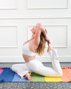 Constructed of purely procured raw cotton, this Bennd Yoga Mat is medicinally dyed and restructured by way of an exclusive combination of 22 Ayurvedic medicinals. Hand-loomed and brushed with natural rubber for ideal traction, the underside is additionally treated to be antimicrobial and aid in lymphatic detox.