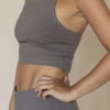 The ESSENCE ECO V crop is a part of our new sustainable collection featuring an innovative fabrication knit from biodegradable polyamide yarn. These eco-friendly pieces have a luxurious feel and sculpting fit. The new V crop has a beautiful deep neckline and flattering wide straps and light gold speckle foil overlay.