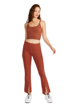 The Cream Yoga’s Julia Front Slit Leggings are a must-have with a chic twist. Featuring a high-waisted silhouette and a sleek legging-tight fit through the knee, these leggings stand out with a seamed front design and flare bottom with a front slit. These leggings offer a stylish yet functional addition to your closet, boasting a 28″ inseam for optimal comfort and versatility.