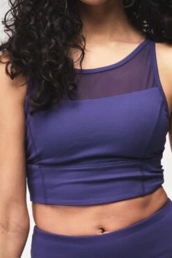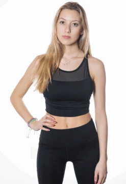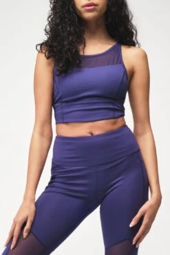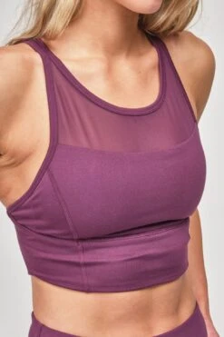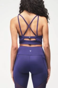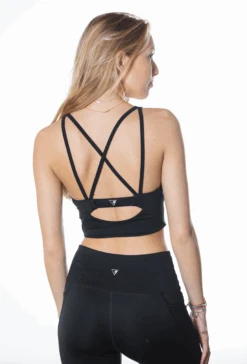Sleek sports bra top offering a mesh panel for breathability and style. Crisscross straps and a longline design create a flattering fit while offering additional support. A perfect companion for yoga, pilates, or the gym, this bra offers light support with its built-in shelf bra and pockets for removable bra pads.