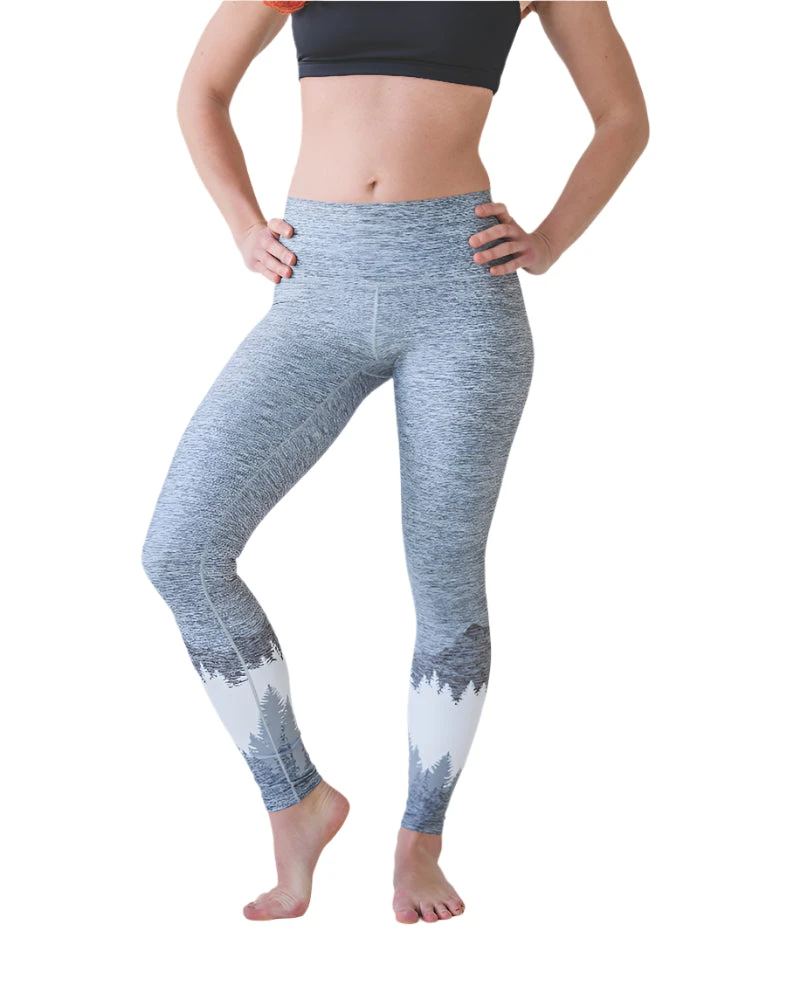 The Mountain Yoga Pants by Colorado Threads feature a light heather design and high-performance fit—perfect for yoga, fitness, or everyday wear. Made from recycled water bottles, these eco-friendly leggings offer sustainability without sacrificing comfort. The high-waisted design prevents roll-down during movement, while the interlock fabric provides unique moisture-wicking properties for breathability and support.