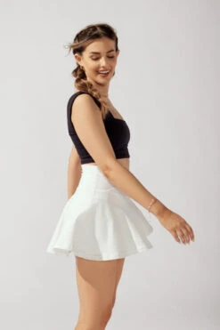 The Skort is back and even better than before. We kept the spin-worthy skirt and flat waistband but gave it 2 new updates. The shorts now feature a slightly longer inseam for deeper phone pockets and better booty coverage. The waistband lays smooth as we removed the back pocket to decrease bulk.