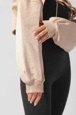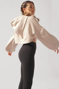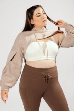 A layering piece that makes a statement — introducing the Step Up Shruggie. This ultra-cropped, drawstring shrug hoodie is complete with romantic pleated sleeves. Perfect for when you’re kinda cold kinda not 😉