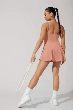This the THE evening gown of workout dresses. Sleek seams and a lightweight stretch fabric combine to create a gorgeous silhouette that outlines your frame, snatching at the waist and flaring at the skirt. With built in shorts, adjustable straps and pockets, this dress is perfect for tennis, pickleball, running or any activity really. Ooh, bonus, it has a slit. We love a leg slit.