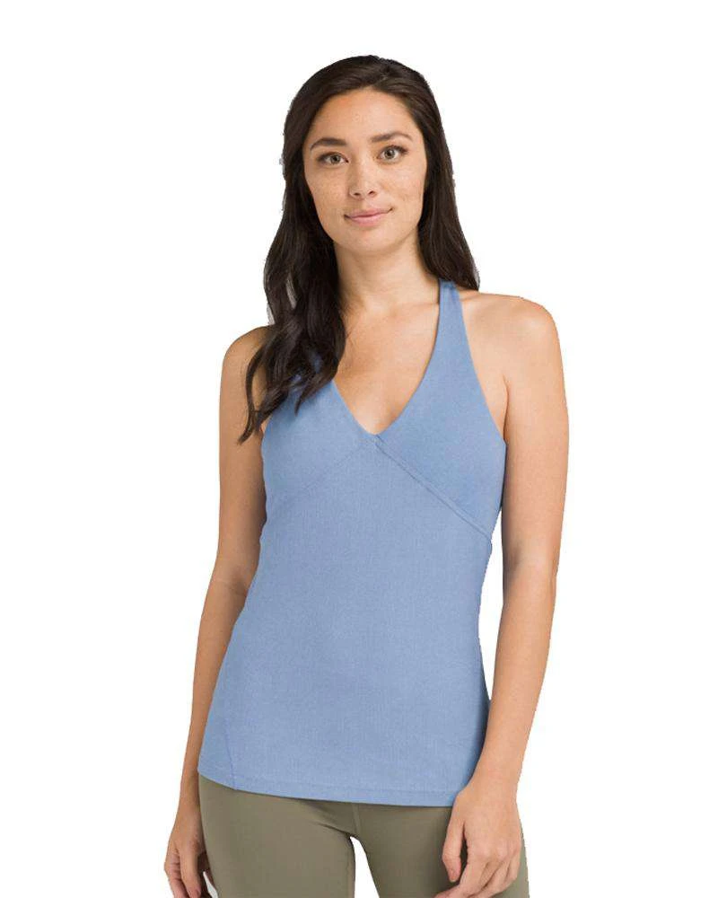 Prana’s Albia Top is made to compliment and support you with its comfortable stretch jersey fabric and built-in shelf bra with removable cups. The V-neck and empire seam flatters while the open back strap detail lets you breathe.