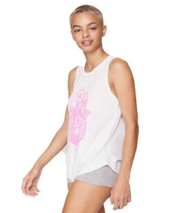 Hamsa is the symbol of protection and what better symbol to have on a shirt! The Hamsa studio tanks as a scoop neck and a long cutout back perfect for a summer layering shirt.Â