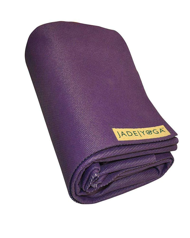 The most portable mat you’ll ever find, Jade Yoga’s Voyager Mat is made to travel! At 1/16″ thick and 1.5 pounds, the mat folds up to about the size of a yoga block. Eco-friendly and biodegradable, it’s free of PVCs and other ozone-depleting substances and it’s made from natural rubber that is sustainable and comes from a renewable source. Exceptional traction with an open cell rubber grip. Slip-free even when wet.